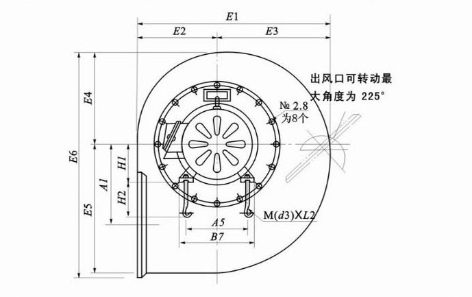 离心式风机可制成右旋和左旋两种型式。从电动机一侧正视:叶轮顺时针旋转,称为右旋转风机;逆时针旋转,称为左旋。