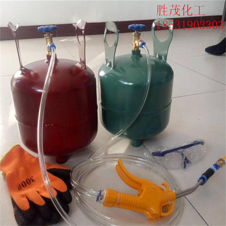 打开包装取出罐体,摇晃使液体混合;将喷枪软管与罐体阀门连接好并将罐体倒置;打开两个罐体的阀门,手持喷枪进行喷涂(当喷枪软管不够长时,可手提罐体把手,配合喷枪移动喷涂)。