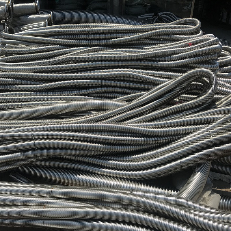 金属软管是现代工业设备连接管线中的重要组成部件。金属软管用作电线、电缆、自动化仪表信号的电线电缆保护管和民用淋浴软管,规格从3mm到150mm。小口径金属软管(内径3mm-25mm)主要用于精密光学尺之传感线路保护、工业传感器线路保护。金属软管大体上由波纹管、网套及接头三大部分构成。波纹管是金属软管的本体,起着挠性的作用;,网套起着加强、屏蔽的作用;接头起着连接的作用。对不同的使用要求,它们之间相互连接的方式各不相同:波纹管、网套与接头三部分以焊接的形式连接,叫做焊接式;以机械夹固的形式连接,叫做机械夹固式,除此,还有把上述两种方法联用的,叫做混合式。金属软管产品包括输吸油胶管、蒸气胶管、喷砂胶管、输吸酸碱胶管、食品胶管、吹氧胶管及各种异型胶管等。广泛应用于机械、化工、石油、冶金、食品等行业。耐压金属软管的压力范围是多少:软管的压力范围一般为PN0.6―32.0Mpa。管是软管安装在压力管路中的主要承压件,同时对波纹管起护套作用,根据管道中的压力大小及应用场所,可选择一层或多层的不锈钢丝或钢带进行编织。