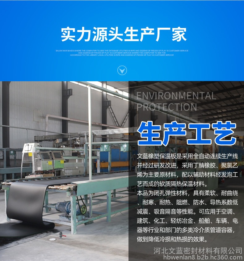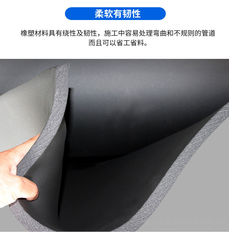 由于该材料优良的综合性能,目前已广泛应用于建筑、轻纺、医药、化工、冶金、 造船等行业。比较集中地使用在空调系统的水、汽管道的保冷防凝露及保温防止热 损失方面,获得了理想的使用效果。 ??橡塑保温板:具有优异的抗水汽渗透能力 湿阻μ≥5,000 既是保温层又是防潮层。 ??橡塑保温板:防火性能好 氧指数32以上 ??橡塑保温板:不含CFC, HFC或HCFC等含氟烃材料 不含甲醛、粉尘和纤维 ??橡塑保温板:具有优良的防火性能。为B2级阻燃材料。