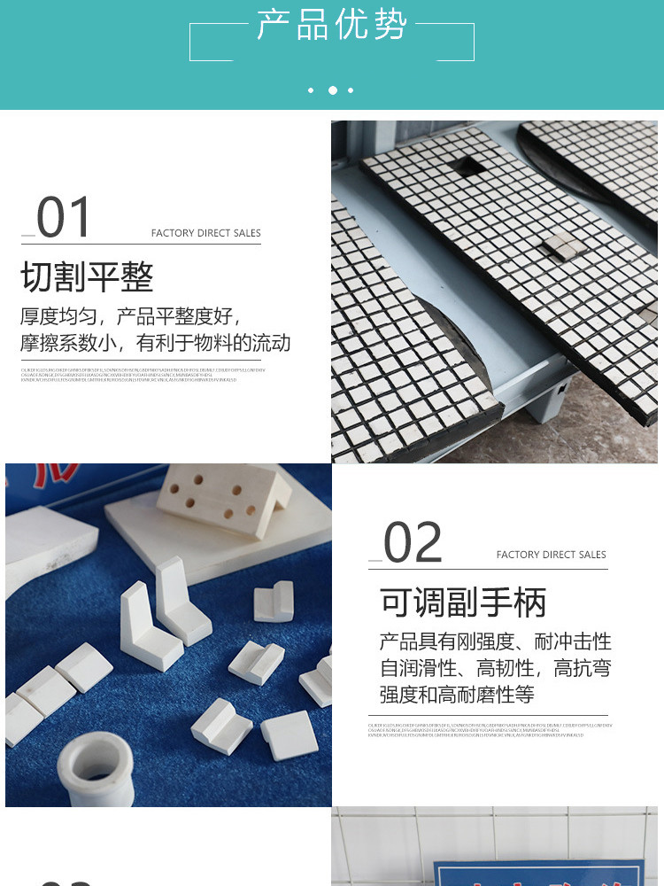 1.耐磨损:氧化铝刚玉陶瓷,硬度达到HRA85以上;