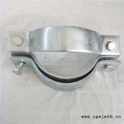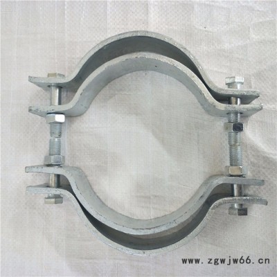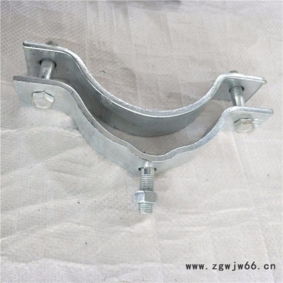 我厂专业生产销售单双吊抱箍,抱箍是用一种材料抱住或箍住另外一种材料的构件,它属于紧固件。抱箍装置由箍板、翼板、拉结筋板、螺栓及内衬垫构成。抱箍有好多种,电缆抱箍,电线杆抱箍,拉线抱箍,吊线抱箍,不锈钢抱箍都是比较常用的。一种嵌入式抱箍,它是由左、右两半片抱箍对合后联接而成,左、右两半片抱箍均呈半圆环状,半圆环两端向外弯折,各形成一个安装耳。其特征在于:所述的左半片抱箍一端的安装。