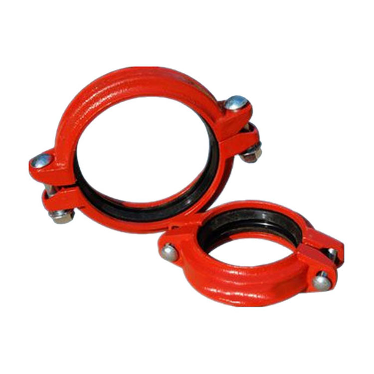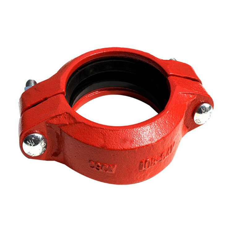 起连接密封作用的沟槽连接管件主要有三部分组成:密封橡胶圈、卡箍和锁紧螺栓。位于内层的橡胶密封圈置于被连接管道的外侧,并与预先滚制的沟槽相吻合,再在橡胶圈的外部扣上卡箍,然后用二颗螺栓紧固即可。由于其橡胶密封圈和卡箍采用特有的可密封的结构设计,使得沟槽连接件具有良好的密封性,并且随管内流体压力的增高,其密封性相应增强