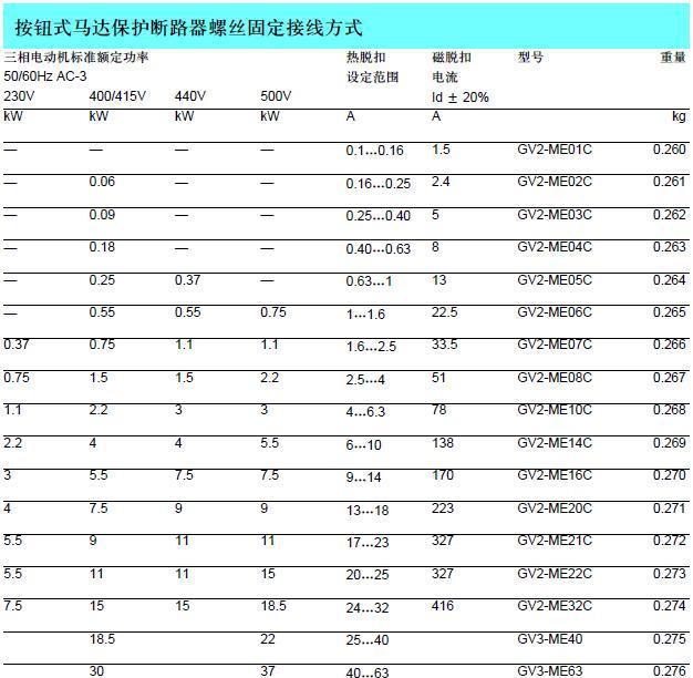 产品简介高分断能力,业内同类产品当中分断能力**高。 高标准:符合IEC60947-2和IEC60947-4-1标准的要求。功能齐全:具有隔离、短路保护、过载保护、缺相保护和直接控制功能;具有欠压脱扣、分励脱扣、故障显示、测试等辅助功能; IP55外壳,具有双重绝缘、防水、防尘等功能;门控旋钮,具有断电开门、ON/OFF可以锁定等功能. 应用范围电动机直接起动、直接控制。短路+热过载保护。需要实现一类、二类配合的应用场合。 产品性能说明温度补偿的环境温度:-20 - +60℃ 额定工作电压:690V 整定电流范围:0.1-32A 脱扣等级:10A(符合IEC60947-4-1) 使用类别:A(符合IEC60947-2) AC-3(符合IEC60947-4-1) 高分断能力:分断能力高达10-100kA。长寿命:电寿命高达10×104次,是普通断路器寿命的5-10倍。