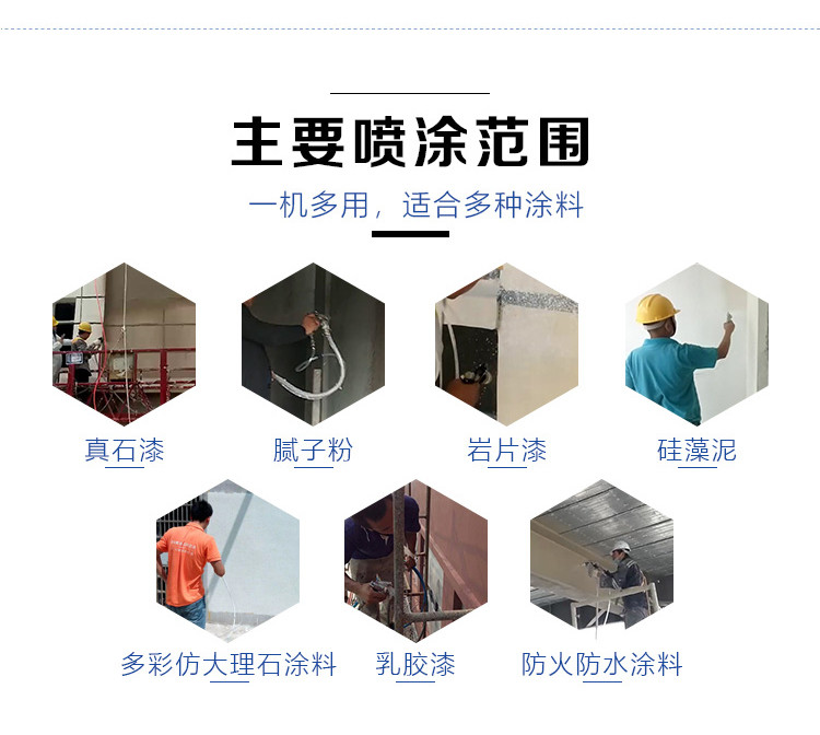 赫诚真石漆喷涂机作为建筑喷涂设备,一机多用,可喷涂多种涂料,喷涂范围包括真石漆,腻子,质感涂料,防水防火涂料,岩片漆,硅胶泥,水包水,乳胶漆等具有流动性涂料
