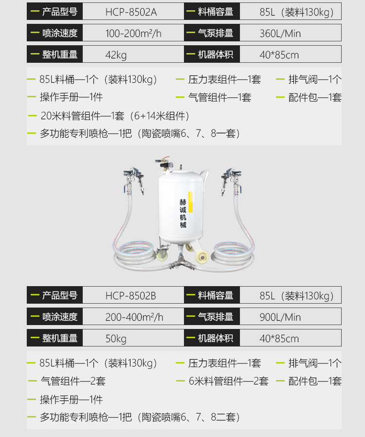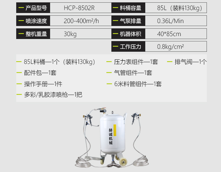 20米送料高度/赫诚手握喷枪/双枪喷涂/24小时售后服务