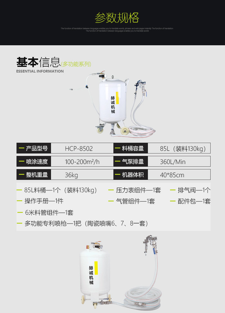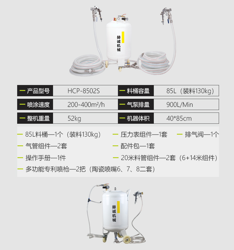 20米送料高度/赫诚手握喷枪/双枪喷涂/24小时售后服务