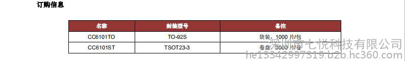 CC6101提供TO-92S和TSOT23-3两种封装,均为符合RoHS规范,产品的使用环境温度范围为-40~150℃。