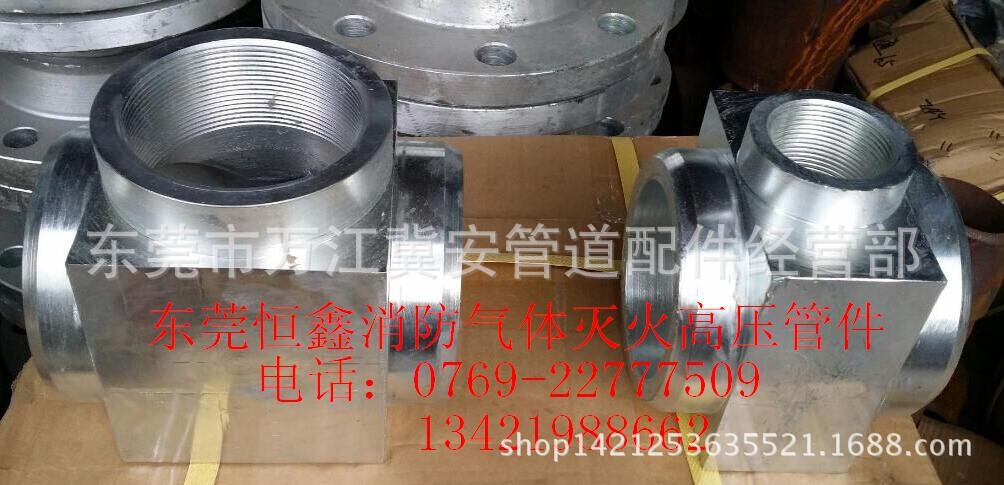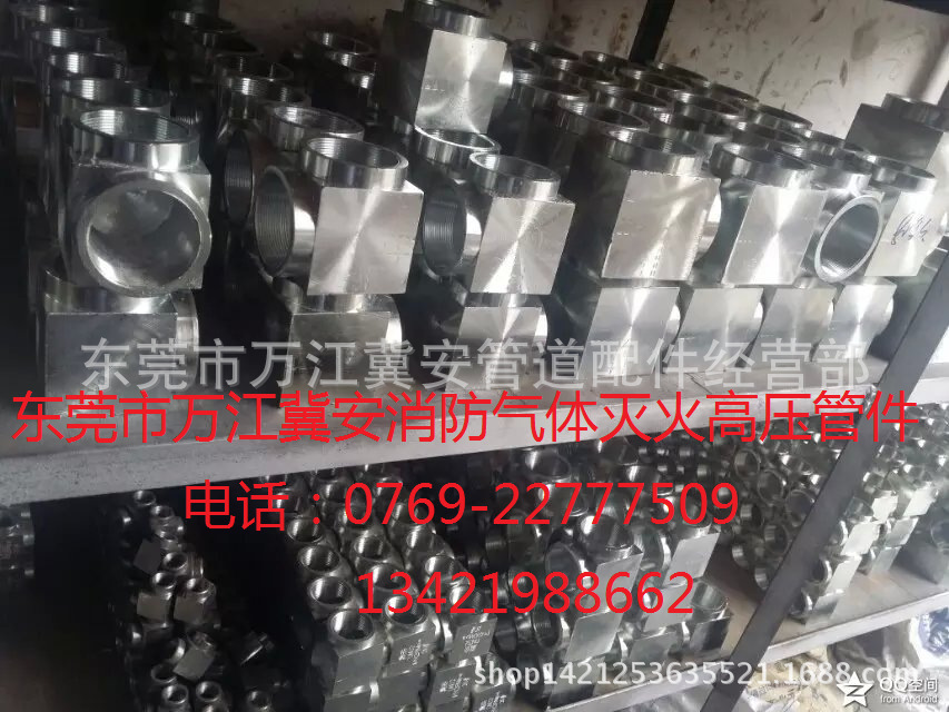 东莞冀安消防气体灭火高压管件位于东莞万江区谷涌(107国道)华发物资建材市场。我厂是专业生产消防气体灭火高压管件的私营企业,主要产品有:锻钢制螺纹管件(90°直角弯头、凹凸面对焊法兰、等异径三通/四通、直通管箍、大小头、活接、内外牙钢/铜喷头、内外丝扣接头、变径直通、补芯、外丝及管堵)和热镀锌无缝钢管。高压法兰盘配套金属垫片、热镀锌高强度螺栓。材质全部使用锻钢制20#钢,确保无气孔和砂眼,内外表电镀、热镀锌处理。型号规格有DN10、DN15、DN20、DN25、DN32、DN40、DN50、DN65、DN80、DN100、DN125、DN150等,其中DN10~DN100采用锥管螺纹方式连接;DN100~DN150采用法兰连接, 连接标准包括:55° 密封管螺纹(Rc)、60°密封管螺纹(NPT)、承插焊、管子外径坡口对焊等,全系列管件均满足气体灭火系统**高工作压力(17.2Mpa),试验压力达到26Mpa,适用于高压二氧化碳气体灭火、IG541混合气体灭火、七氟丙烷气体灭火、三氟甲烷(HFC-223)、二氧化碳(CO2)气体灭火系统等各类气体灭火系统,性能参数均符合**标准,使用安全可靠。