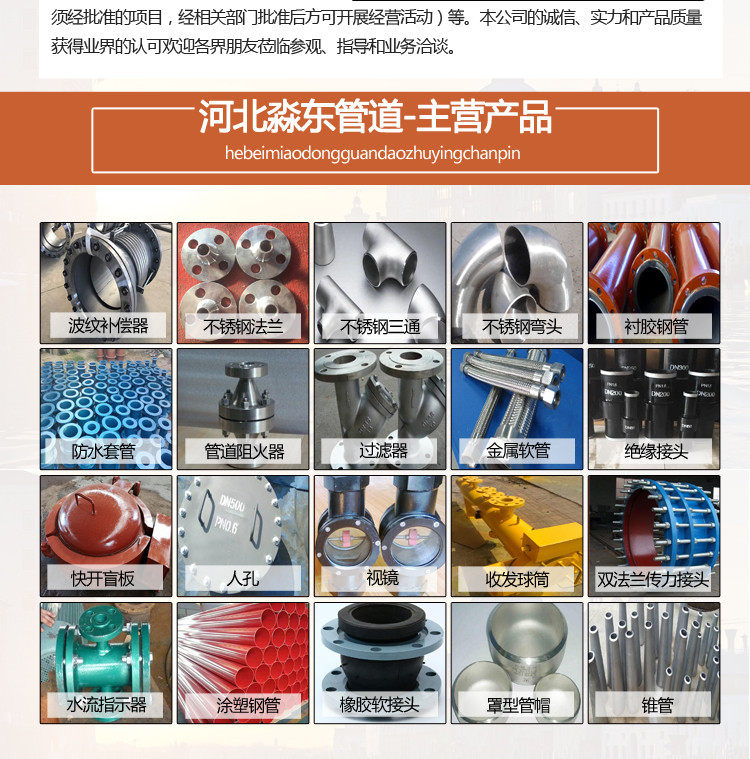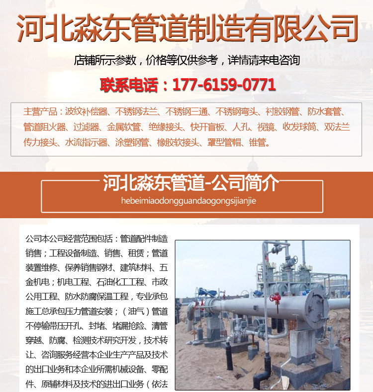 我公司的产品主要包括快开盲板、卧式三瓣卡箍型快开盲板、立式三瓣卡箍型快开盲板、卧式锁环型快开盲板、卧式插扣型快开盲板、立式插扣型快开盲板、收发球筒、管道配件、绝缘接头等产品。我们坚持 、履行承诺、不断改进”的质量方针和“忠诚营销、共创辉煌”的营销理念,完善了营销网络,用品牌占领市场,用真诚服务客户。热诚欢迎朋友光临我公司参观、考察,洽谈业务,共创辉煌的未来