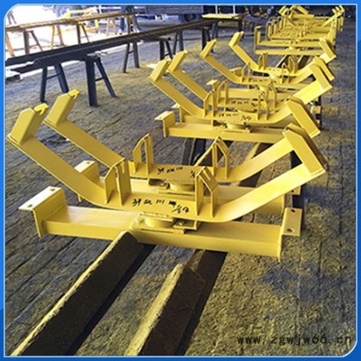 托辊支架有槽形支架、槽形调心支架、平辊支架、上下平辊调心支架,弹簧板式缓冲托辊支架,适用不同物料及不同场合的使用,波状挡边带式输送机。