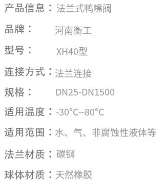 产品介绍鸭嘴阀是城市排水排洪系统和截污管网广泛采用的排污止回阀。鸭嘴阀为一体式结构,橡胶材质,内置锦纶帘布胶层,没有任何机械配件。阀门启闭特性好,只通过内部管线压力和外界背压来控制阀门启闭,不需其它运行部件,也不需要人力或电力。阀门完全能够防污水腐蚀,阀门关闭时,渗漏量为零,密封性能好。