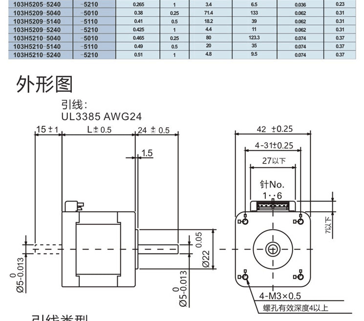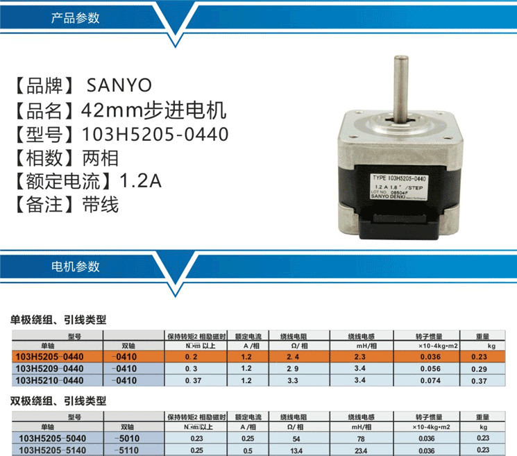 深圳恒工 103H5205-0440 SANYO步进电机 六出线 电流1.2A 力矩0.2NM