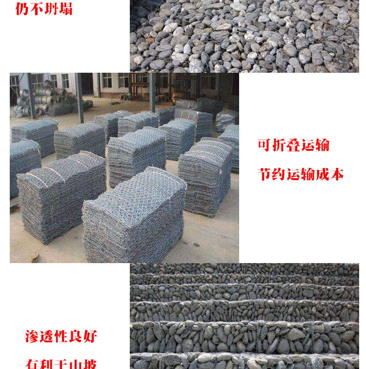 组合性好:加工运输方便,可按设计要求捆扎成各种形状,适应山坡,岸滩和堤防的形状。