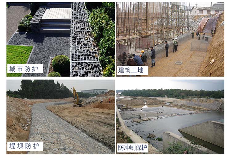 结构可用于边坡支护、基坑支护、山体岩面挂网喷浆、边坡植生(绿化)、石笼网还能制成石笼网箱、石笼网垫用于江河、堤坝及海塘的防冲刷保护以及水库、河流截流。