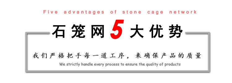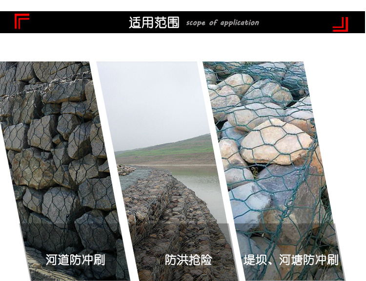 石笼网可用于边坡支护、基坑支护、山体岩面挂网喷浆、边坡植生(绿化)、铁路高速公路隔离护拦网,它还能制成箱笼、网垫,用于江河、堤坝及海塘的防冲刷保护,水库、河流截流用网箱。河流严重的灾害是水流冲刷河岸使其破坏,引发的洪水泛滥,导致生命财产遭受大量损失和大量水土流失。因此在处理上述问题时侯,格该生态格网结构的应用成为**的解决方案之一,它能使河床河岸得到坚固性保护。