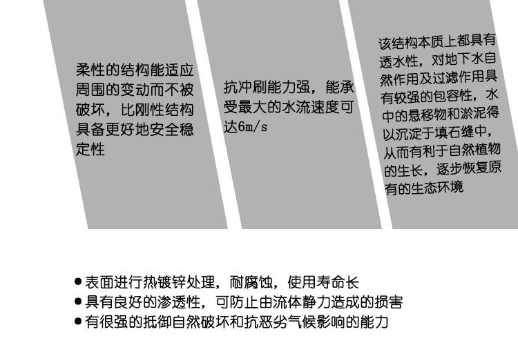2、抗冲刷能力较强,能承受急速的水流速度可达6m/s;