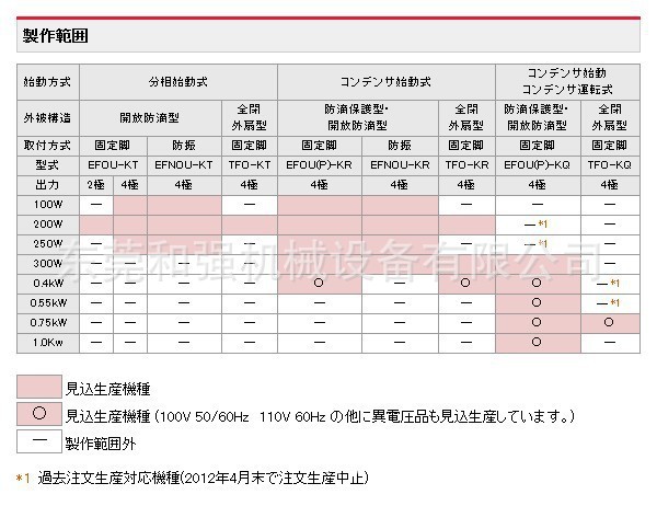 单相电机系列:EFOU(P)-KT EFOU(P)-KR EFNOU-KR EFOU(P)-KQ