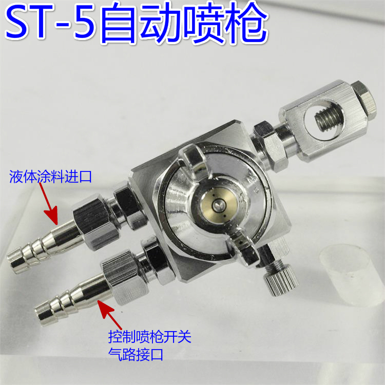 ST-5 ST-6小型自动喷枪,采用高品质316不锈钢(耐酸,耐碱,耐磨)制作喷嘴和喷针,来达到适合喷涂各种液体。 高品质自动喷枪,质量保证,一年质保!