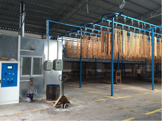 3.高效:喷涂生产流水线作业使生产效率及时提高两倍、三倍,甚至更高。