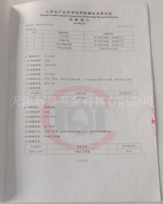 天津辉嘉五金科技有限公司已经通过天津市产品质量监督检测技术研究院的严格检测。