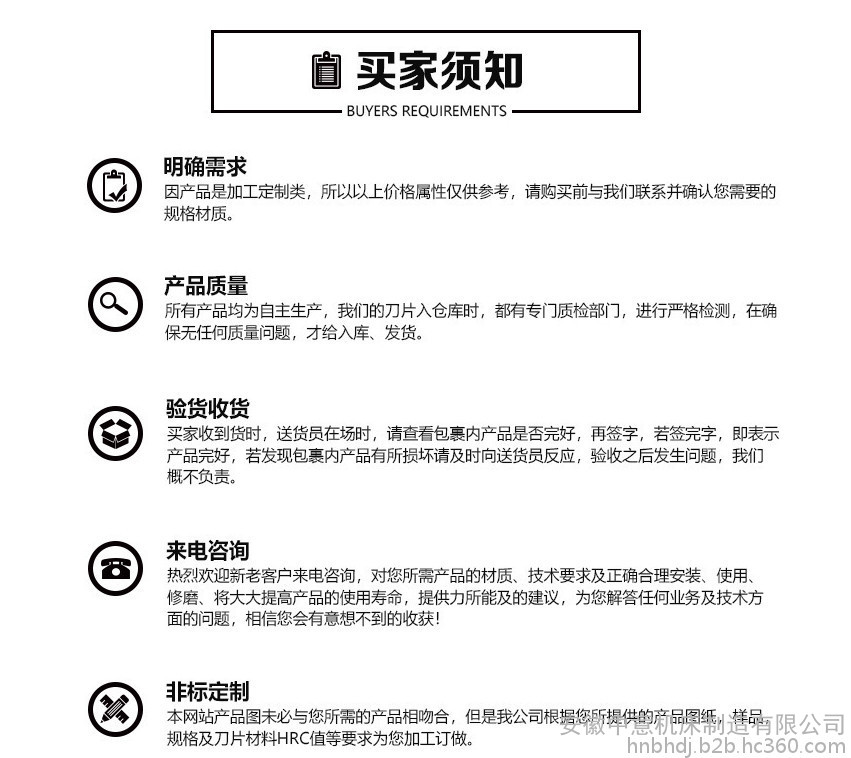 3:为了给您订做出所需要的产品,请您提供产品的规格,型号和机器的具体生产厂家,非标刀片产品还需要您提供图纸或样品。