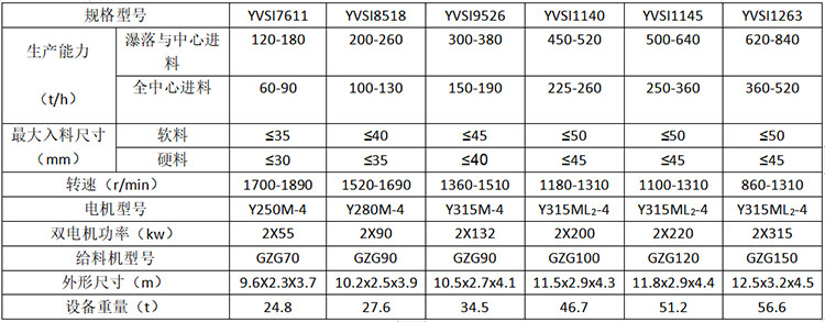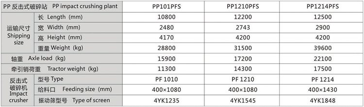 各种移动破碎站参数表
