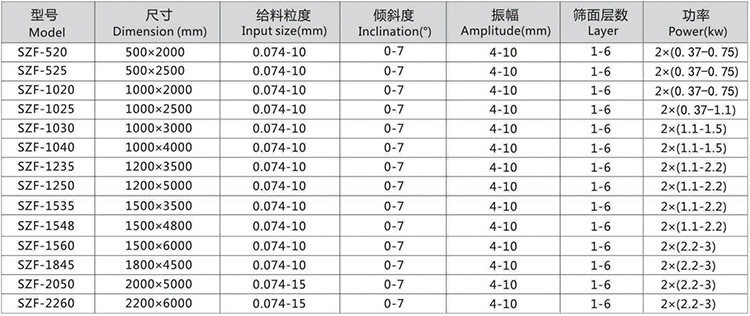 | 筛面倾角 | 0-7度 |