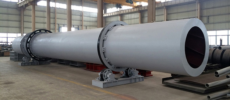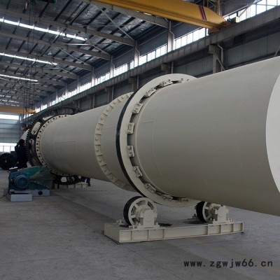 转筒烘干机主机是一略带倾斜并能回转的圆筒体。工作时湿物料由进料口加入,物料在筒体内被扬料板抄起,均匀地缓缓地洒下,并被推动向排料端缓缓移动。物料移动的过程中与筒体内顺流(也可定制逆流式)通过的高温气体和热的筒壁接触,使物料中的水分升温并变为水蒸汽。水蒸汽由引风机抽排出去,干燥后的物料由排料口排出,完成烘干过程。