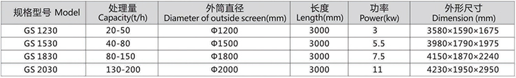 待筛分物料进入滚筒筛滚筒内部,物料随滚筒转运。在转运过程中物料翻转,小颗粒物料通过筛孔排出滚筒外,大颗粒物料沿滚筒倾角向一端移动**终的末端排出。