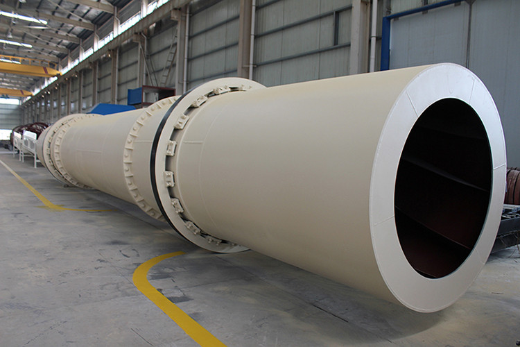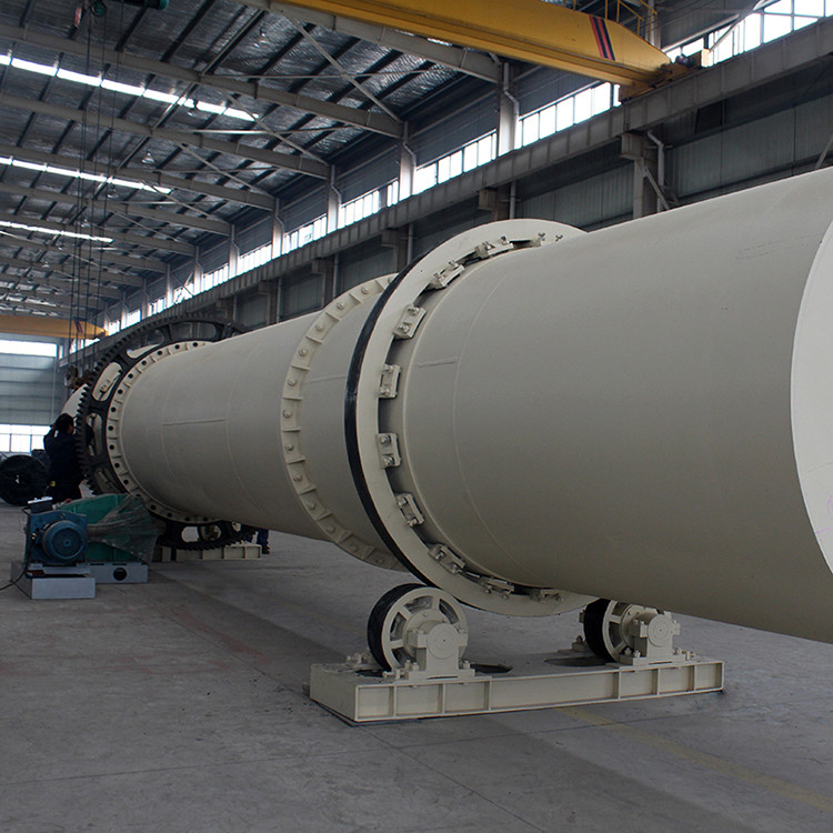 转筒烘干机主机是一略带倾斜并能回转的圆筒体。工作时湿物料由进料口加入,物料在筒体内被扬料板抄起,均匀地缓缓地洒下,并被推动向排料端缓缓移动。物料移动的过程中与筒体内顺流(也可定制逆流式)通过的高温气体和热的筒壁接触,使物料中的水分升温并变为水蒸汽。水蒸汽由引风机抽排出去,干燥后的物料由排料口排出,完成烘干过程。