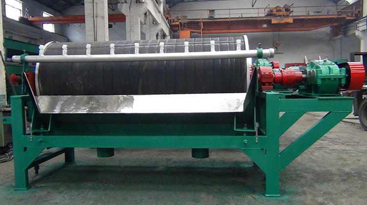 矿浆经进料口给入机体内,矿浆流进入滚筒正下部,先顺流向后方流动,磁性矿物被有磁性的滚筒吸住并逆流折返。当到达排出口区域时已脱离磁场区,在卸料水流的冲刷下脱离滚筒,排入排料口成为精矿。不能被滚筒吸住的脉石矿物从下部排料口排出成为尾矿。