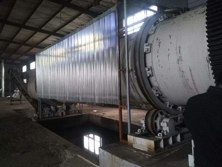 转动的筒体外有水喷淋装置,使冷却水流过筒体表面。同时筒体排料端有鼓风机,将冷空气吹入筒体内。倾斜的筒体以一定的速度转动,高温 物料进入筒体内部,被扬料板扬起,与冷空气接触,同时与凉筒壁接触,从而将热量带走,实现物料的冷却。