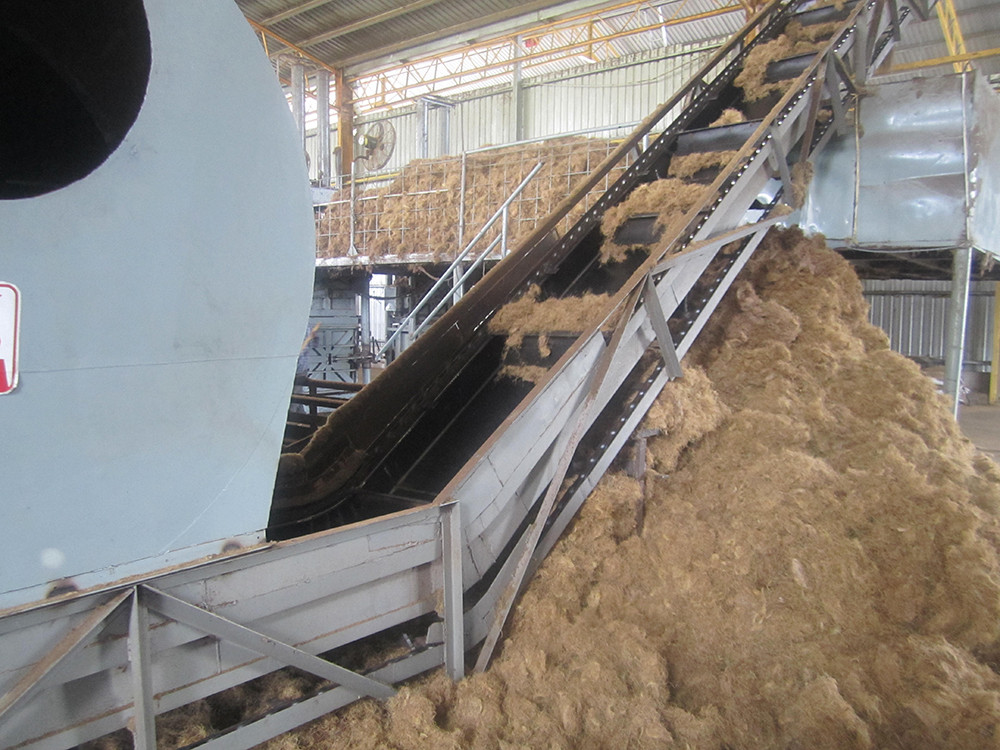 主要工作原理是:棕榈丝进入棕榈丝烘干机内由组合料板与回转筒体共同作用,物料在筒内沸腾流化,热风与物料充分触,完成干燥。