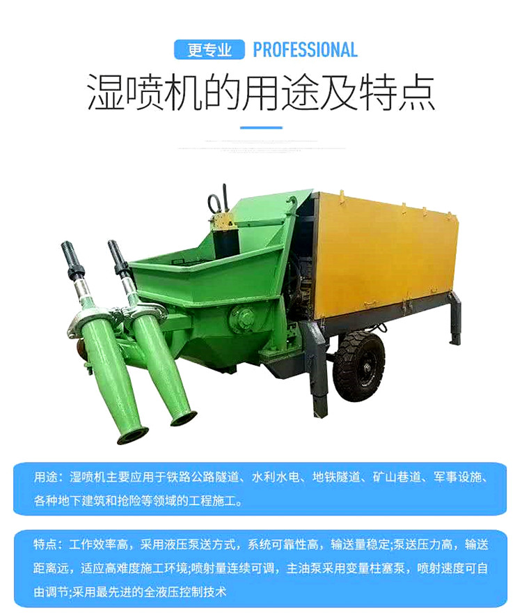 由于喷射工艺的不同,喷射混凝土强度不同,干喷和混凝土强度较低,一般只能达到C20而混和喷射和湿喷则可达到C30~C35。车载混凝土湿喷台车车载混凝土湿喷台车是为适应当前施工技术而开发的新产品;在设计和制造上吸取了品牌产品的优点,车载式双机双喷头湿喷机,主要性能参数达到和超过了国际同类型产品的水平。车载混凝土湿喷台车采用了先进的、设计合理的运动机构,工作机动灵活,车载混凝土湿喷台车批发价格,施工效率高。液压双喷头湿喷机 车载式双喷头湿喷台车