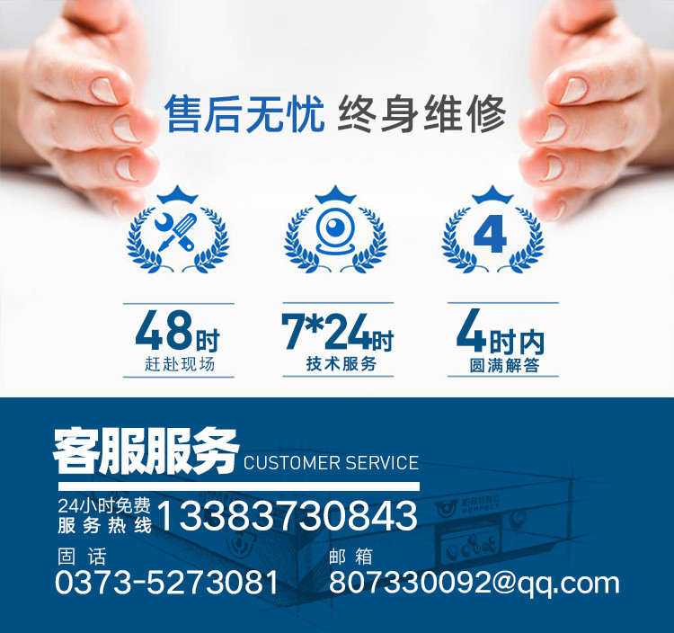 4、公司售后服务人员**24小时全天候为用户服务,在接到用户有关产品任何问题的来电、来函或口头通知后,服务人员会在4小时内给予圆满解答;如果产品发生故障时,一般故障服务人员会在48小时内赶到现场,紧急故障会在24小时内赶到现场,确保在较短的时间内为用户排除故障。