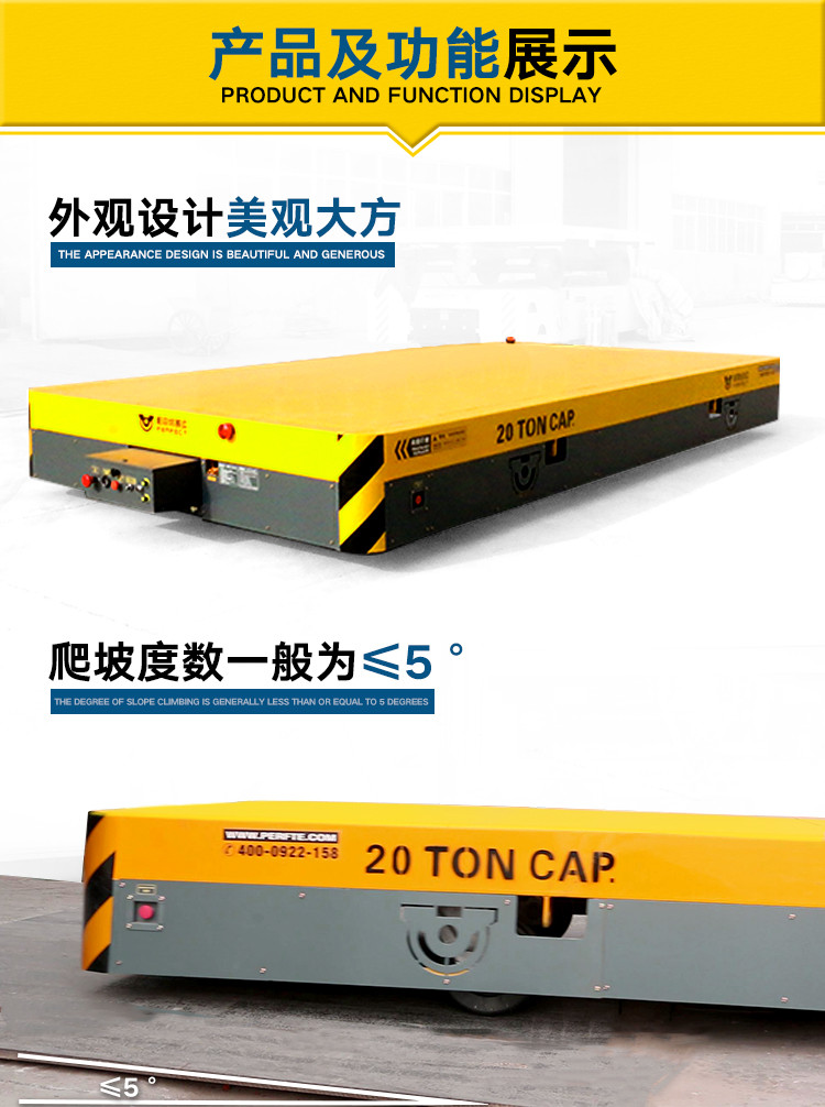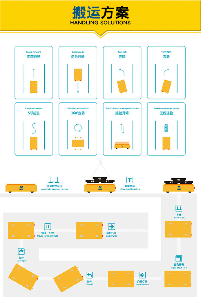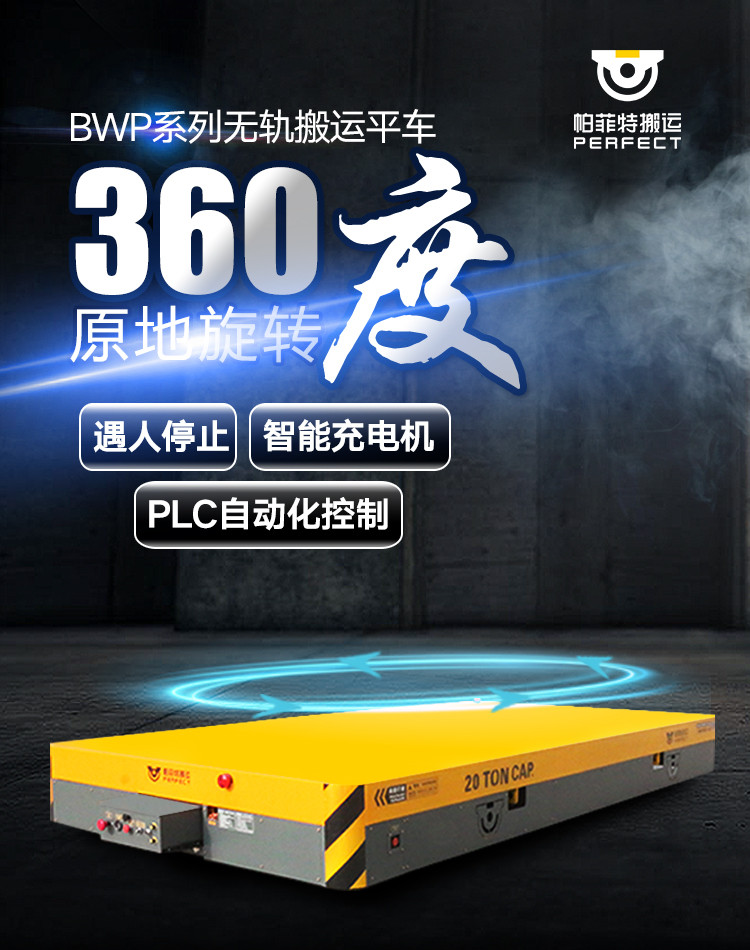 BWP系列电动平车以铅酸蓄电池为能源,以控制模块为控制核心,以操作手柄和遥控控制为输入手段,以台面负载货物,以转向轮导引方向并和固定轮共同承载重量,以电机提供原始动力,以减速机放大扭矩并提供给固定轮动力,以LED声光报警器为工作和警示标志,以智能充电机为外部电源输入。在以上的功能配合下,共同组成BWP系列电动平车的工作能力,BWP系列电动平车具有操作简单,启动力矩大,行驶平稳,无声转向等优势外,还具有其结构带来的优势,即不受轨道制约,可以在平整场地中左右转向,使用方便