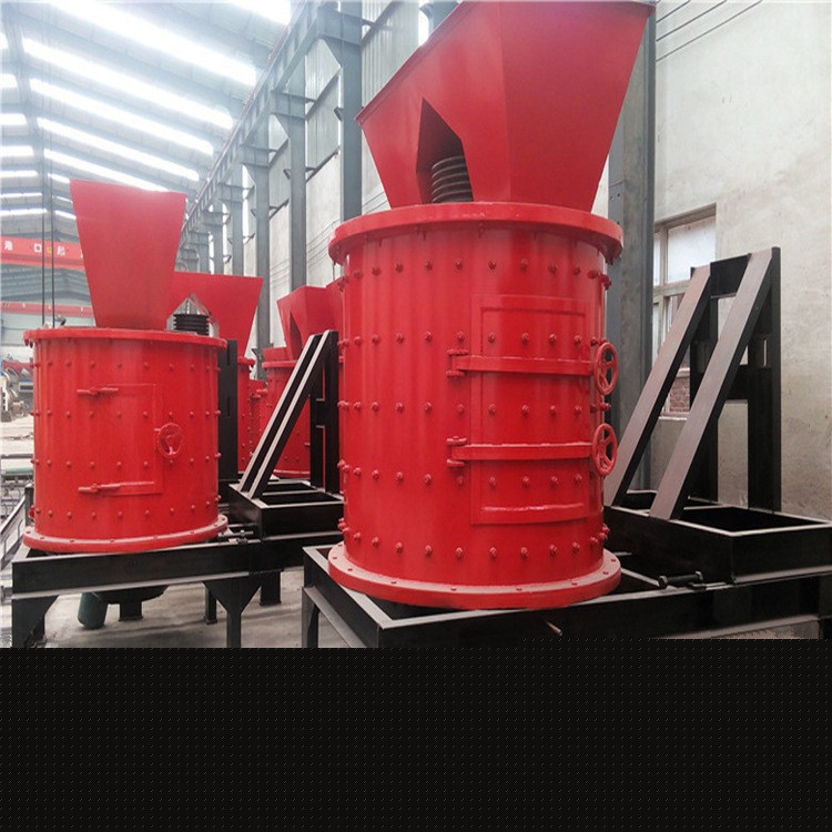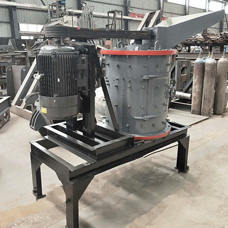 物料由机器上部垂直落入高速旋转的叶轮内,在高速离心力的作用下,与另一部分以伞状形式分流在叶轮四周的物料产生高速撞击与粉碎,物料在互相撞击后,又会在叶轮和机壳之间以物料形成涡流多次的互相撞击、摩擦而粉碎,从下部直通排出,形成闭路多次循环,由筛分设备控制达到所要求的成品粒度。