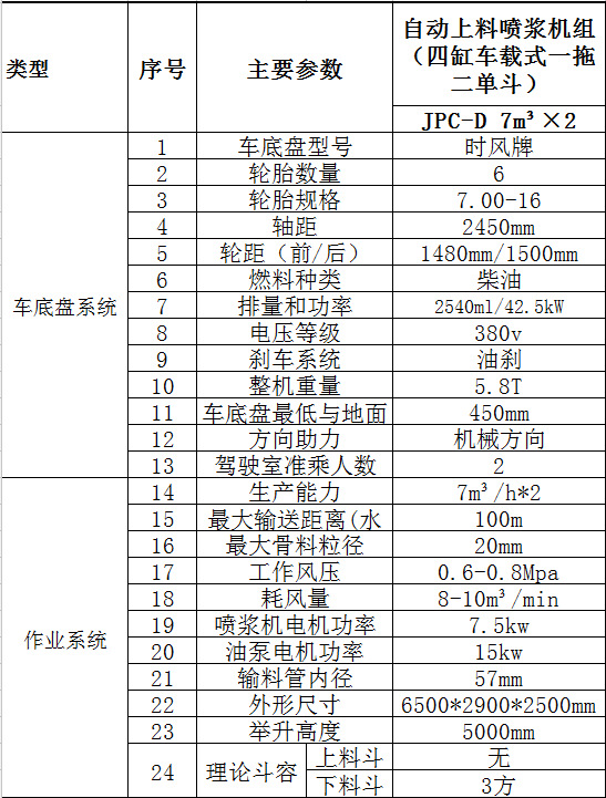 吊装喷浆车(一拖二单料斗,喷浆机可选配):