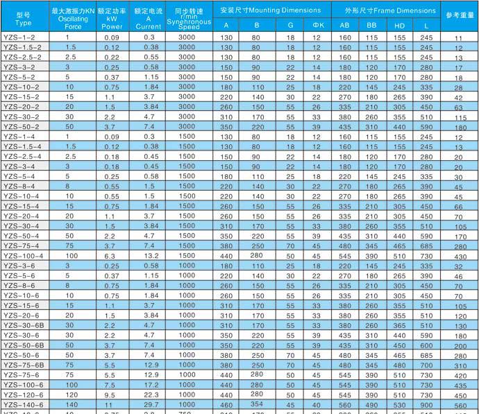 YZS系列振动源三相异步电动机(简称振动电机)是各类振动机械的激振源。广泛应用于电力、建材、粮食、煤炭、矿山、冶金等行业的振动给料机,振动输送机、振动选矿机及料仓的振动防堵塞机构等。
