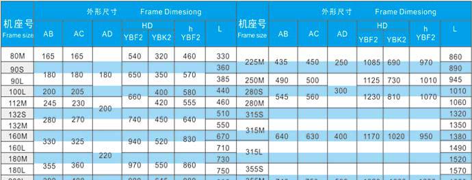 隔爆型三相异步电动机的外观尺寸、安装尺寸: