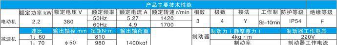制动器电源及性能数据: