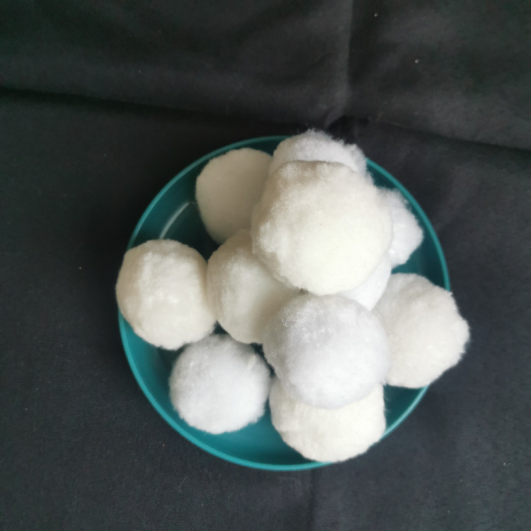 纤维球是由纤维丝扎结而成的球形滤料,它与传统的钢性滤料相比,具有弹性效果好,不上浮水面,空隙大,工作周期长,水头损失小等。在过滤过程中,滤层空隙沿水流方向逐渐变小,比较可再生反复使用,省时省力等。