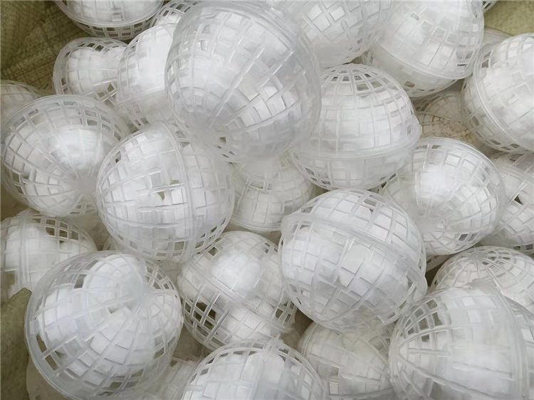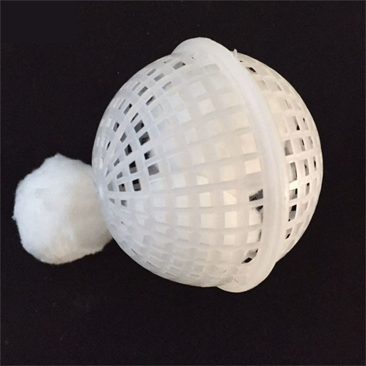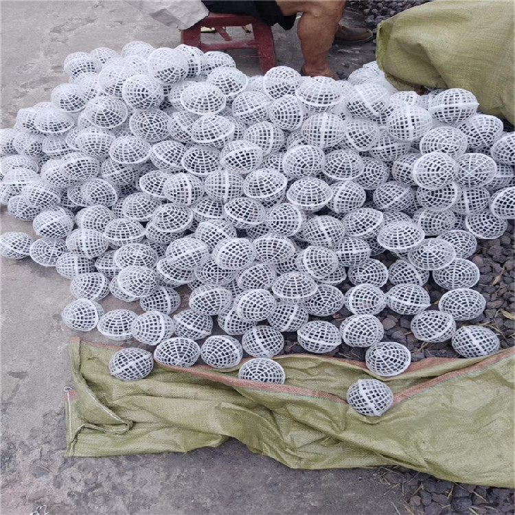 特点:该填料中有稀乙烯材料注造而成,分内外双层球体外部为鱼网状球体,内部为旋转型球体,在使用过程中,微生物挂膜快、生物膜易脱落,抗酸碱、耐老化、不受水流影响,使用寿命长产品耐生物降解,剩余污泥极少,安装方便。