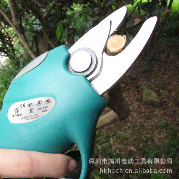 一、本产品为电池驱动无线电动剪刀。其结构:固定刀片、移动刀片、转动、锂电池、微控、充电指示灯、充电器插头、电池充电器和卸除电池按钮等九部分组成,充电电源为220v-240v。主要应用于修剪树枝和植物,使用简捷方便提高工作效率3-5倍,修枝质量明显高于一般手工剪刀。