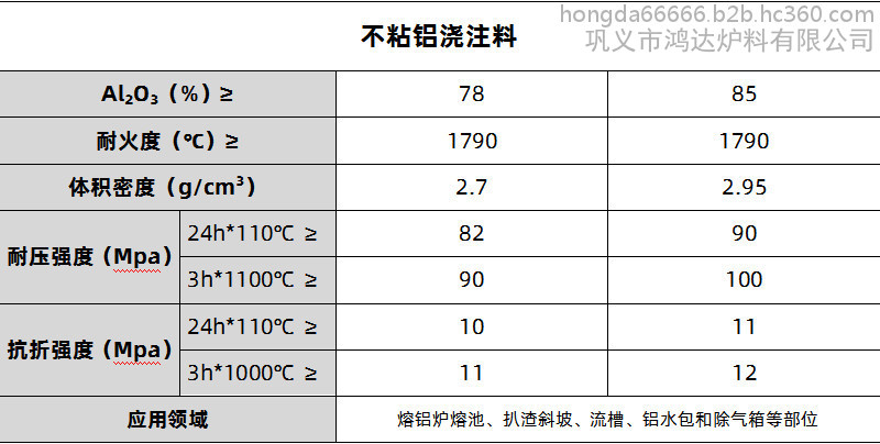 | 产品名称 | 不粘铝浇注料 |