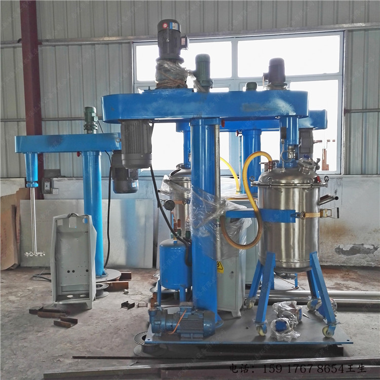 二、分散机的分散盘下方呈层流状态,不同流速的浆料层互相扩散,起到分散作用。高速分散机具有升降、360度回转、无级调速等多种功能。可同时配置2-4只容器, 360度回转功能能更好的满足一机多用,能够在很短的时间内从一个缸变换到另一个缸进行作业,分散机极大的提高了工作效率,同时也降低了人工劳动强度。
