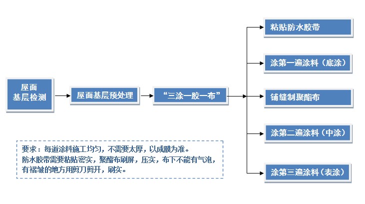 ?原防水层清理——基层找平——刷底油——阴阳角粘贴附加层——铺贴防水卷材——防水层表面清理检查------——检验收签?