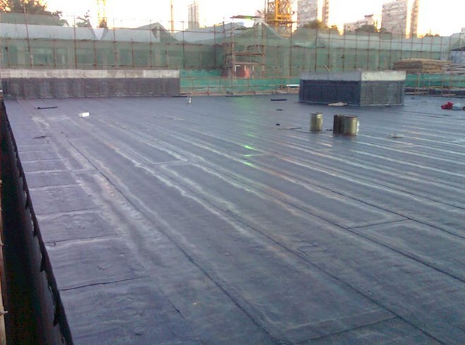 (3)涂刷底油,基层干燥后,涂刷基层处理剂。用长把排刷把冷底子油涂刷在干净干燥的基层表面上,复杂部位用油漆刷刷涂,要求不露白,涂刷均匀。干燥4h以上至不粘脚后方可进行下道工序。