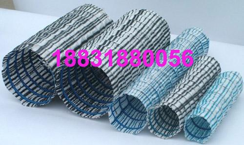 软式透水软管通用名称:透水软管、渗水软管、软式弹簧透水管 软式透水软管又称渗水导管是一种新型地下排水材料, 软式透水管是以防锈弹簧圈支撑管体,形成高抗压软式结构,无纺布内衬过滤,使泥沙杂质不能进入管内。从而达到净渗水的功效。丙纶丝外被覆层具有优良吸水性,能迅速收集土体中多余水份。胶筋使管壁被覆层与弹簧钢圈管体成为有机一体。具有很好的全方 位透水功能,渗透水能顺利渗入管内,而泥沙杂质被阻挡在管外,从而达到透水过滤,排水之目的。